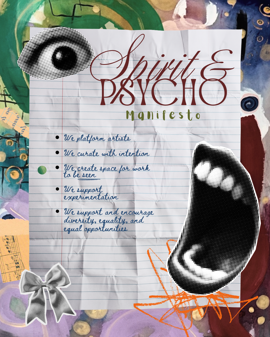 As an artist myself, with my own practice rooted in experimentation, process, and learning as I go, Spirit & Psycho grew directly out of that. Out of making work, asking questions, and wanting space for ideas to exist without pressure.